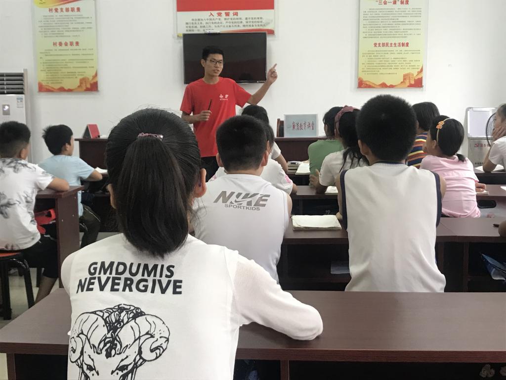 “中国梦 未来情”暑期支教团队员引导学生的运动精神,用强魄的体质为中华之崛起而努力读书。