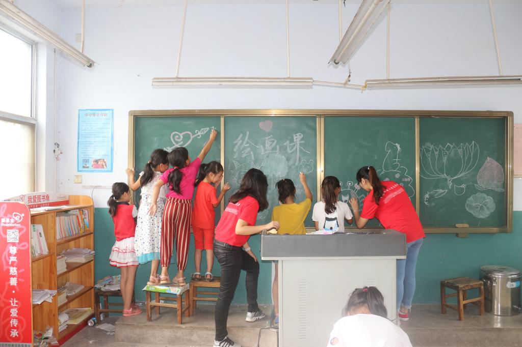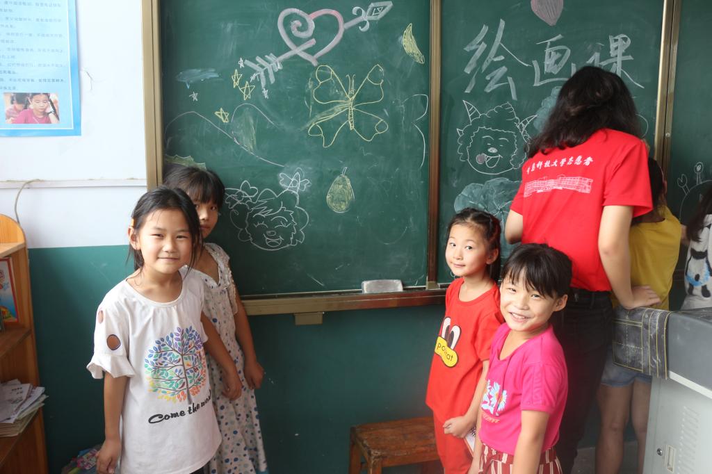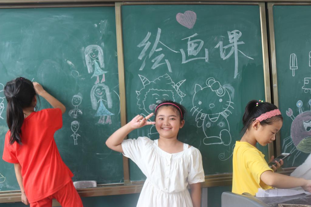 由于暑期正是收桃季家长忙于生计,孩子的暑期生活缺少陪伴而略显孤单,调研团的到来让孩子了解外面世界的精彩,孩子愿意用画笔记录下这个充实、难忘的暑假。同时在画中,孩子充满对未来的憧憬和希望,一个个小小的身影在黑板前、画纸间穿梭,而那上面承载的正是他们的大大的梦想和期盼。