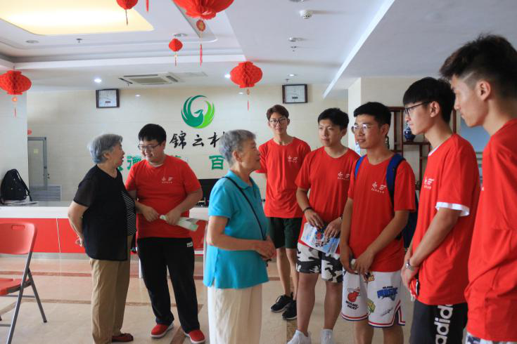 7月25日,调研队员在崔瑜涵老师的带领下,两两组队,前往锦云村老年公寓向老人普及防诈骗知识。
