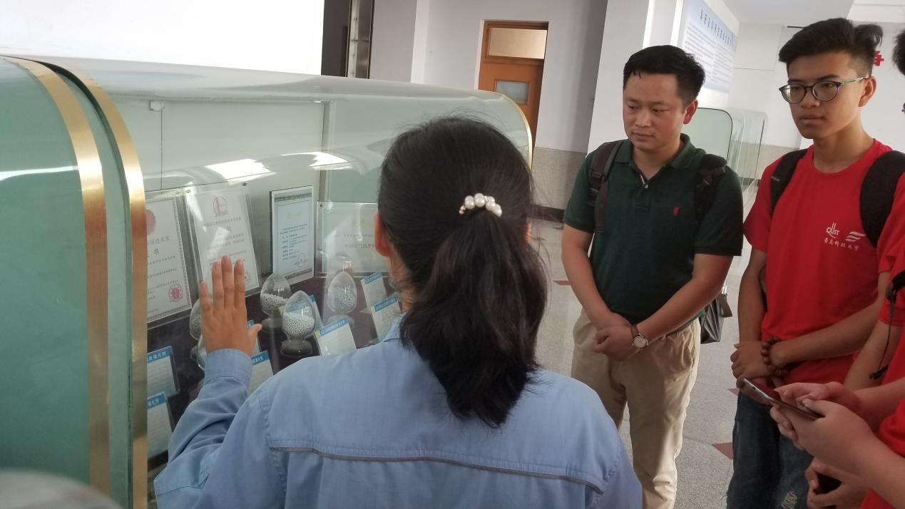 赴齐鲁石化“新旧动能转换”调研团在指导老师刘海波的带领下对齐鲁石化新型催化剂进行参观学习和了解,工程师徐翠翠为团队成员详细地介绍了新型催化剂的研发过程和突出成就。