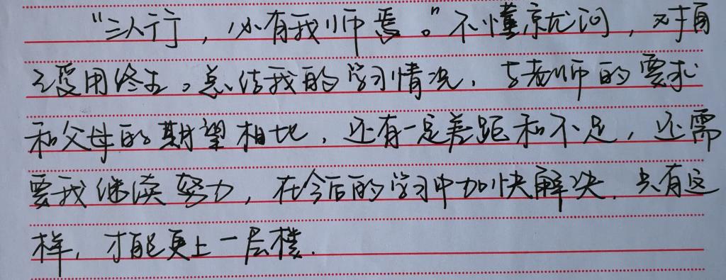 经过此次与父母的书面交流,学生普遍认识到了自己的学习上、思想上、生活上的优缺点,父母也更加了解孩子在校的情况,以便提供更多的帮助和支持。从而形成“家校合育”的教育模式,共同陪伴学生快乐成长。