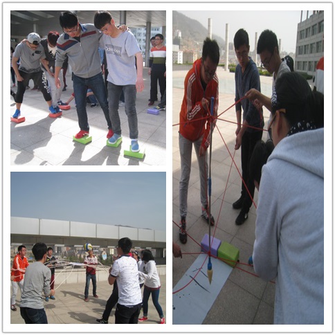 活动初始,老师先通过一句诙谐的语言成功点燃了班级的气氛,并在随后的讲解中提到:心理素质作为整个精神活动的基础,对大学生的影响是极其广泛而深刻的,它影响和制约着大学生各方面素质的发展,渗透到大学生的一切活动中为背景;之后在老师的带领下,同学们来到室外,开启第一个游戏。面对前方的三块“砖”,以及一条河,手脚不能碰地,并在有限讨论的时间中找出最佳的渡河方案。平时常见的小游戏,突然变得困难重重,各个团队经过多次的重新商讨,终于完成了渡过三人的目标;接下来,多人写字及多人颠排球。团队中的人只能通过绳子控制笔或是球板。虽然同学基本都是初次合作,但都表现出充分的信任与默契,通过大家的一致努力同学们快速的完成了这两个活动;最后同学们一起分享了心得体会,畅谈了心中的感受,进一步拉近了彼此间的距离;
