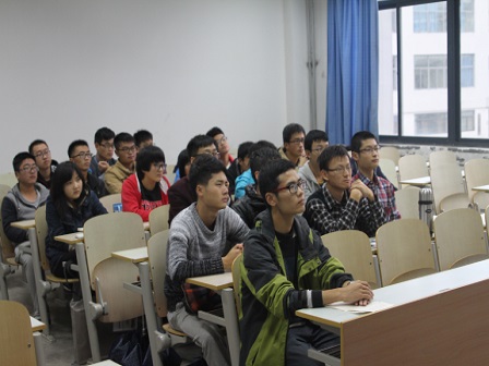 在班长丁恒做了关于加强学风建设重要性的发言之后, 班会正式开始。在班会上,徐甲田结合切身的体会和心得,对同学们提出了五点建议:一是把学业摆在最重要的位置,谨记学生的首要任务是学习,严格要求自己,尽快适应从中学生到大学生的角色转变;二是提高人际交往能力,以全面发展为目标;三是友爱同学,增强班级的向心力,争取心往一处想,劲往一处使;四是加强自律,增强自制力,争创文明课堂,拒做“低头族”;五是提高个人素质,提升思想道德修养,争做四有公民。