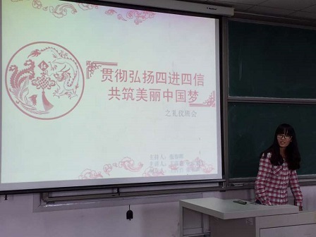 电信151班举办了围绕“贯彻弘扬四进四信,共筑美丽中国梦”的主题,以“文明礼仪进支部、进团课”为开篇的团日活动,电信151全体成员参加了这次班会。