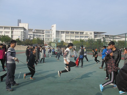 崂山校区南苑操场参与了跳大绳比赛。