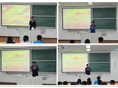 电气专业在明德楼504教室举办了以“培育和践行社会主义核心价值观,争做自化好青年”为主题的演讲比赛。出席本次活动的指导老师是张艺敏,评委由张老师及曹培芳、李研同学担任,共11名同学参与了此次角逐。