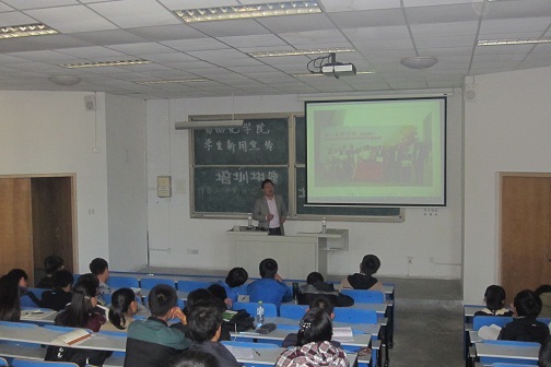 分团委副书记兼学工办主任刘兆鹏老师在崂山校区进行了以新闻宣传为主题的培训讲座。参加此次讲座的有北京赛车PK10