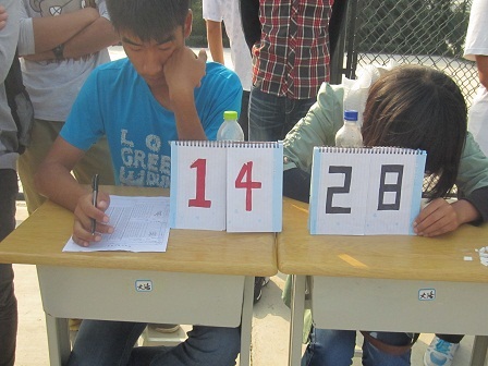 学子用两个笔记本改装而成,虽然简陋,但却保证了计分这一环节的正常进行。正是在他们的齐心努力下,比赛才得以顺利进行。