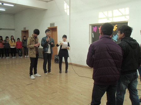 参赛选手每三人组成一队,由一名选手描述事物,另外两名选手回答,在三分钟的时间内,答对题目最多组获胜。随着主持人的一声“开始”,比赛正式拉开帷幕。比赛过程中,选手们都竭尽全力,描述的同学为了更加贴切的展示事物,摆出各种千奇百怪的造型,大厅的插座、椅子也都物尽其用,而答题的同学也是绞尽脑汁的思考,现场的观众也因场上选手滑稽的动作和幽默的回答爆发出阵阵欢笑与掌声。