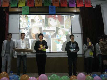 学生会副主席孙宏伟,维克多现任会长石新鹏和上届英文歌曲大赛冠军任康桥。比赛还邀请了个兄弟北京赛车PK10