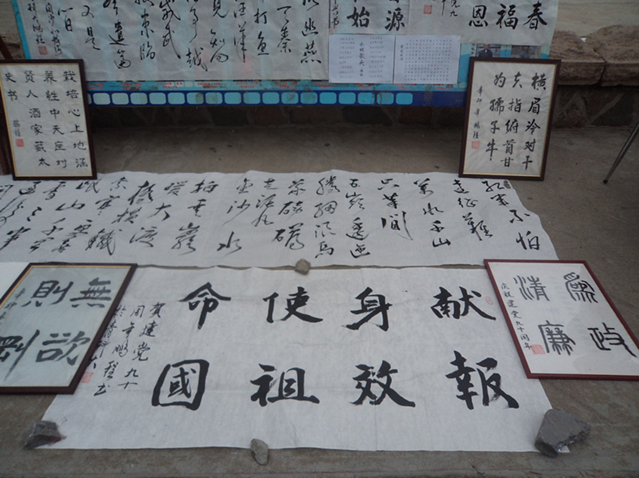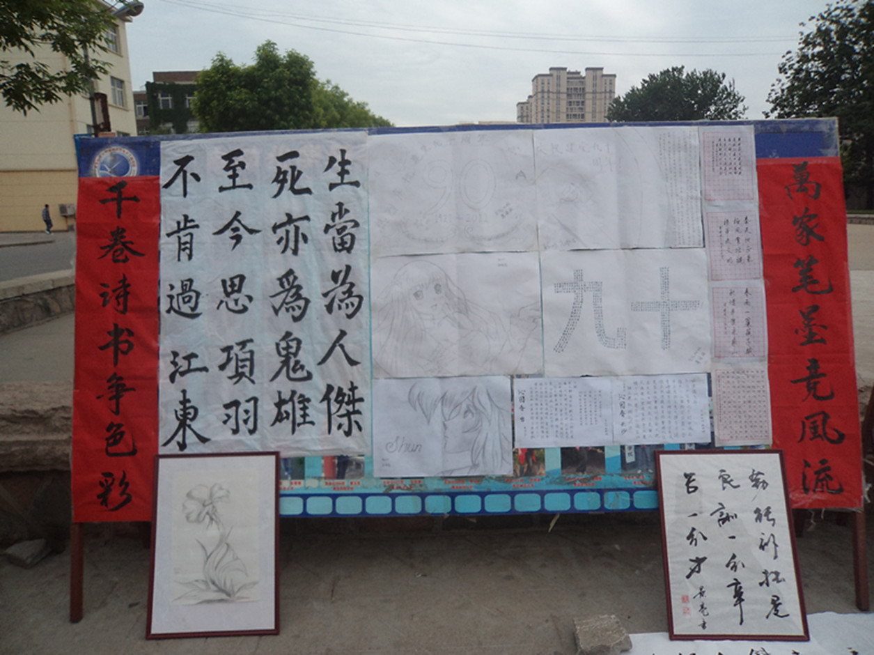 此次展览以“讴歌红色党史 展现多彩青春”为主题,旨在让我们回顾我们伟大的党走过的90年风雨历程,同时提高同学们写作以及绘画能力,提高大学生的艺术鉴赏水平。此次书画展共展出作品几十幅,分为书法和绘画两大门类,题材多以展现党史,歌颂党恩为主,风格迥异。其中刘鹏程独具特色的书法作品用笔刚劲峻拔,笔锋遒劲,展现出中国书法的神采气韵和婉雅秀逸的风格;多幅绘画作品以娴熟的画法,展现了作者们扎实的功底。此次书画展吸引了众多同学驻足观看,得到了一致好评。书画艺术是中国文化的重要组成部分,是世界民族艺术殿堂中的瑰宝。中国书画艺术源远流长,历代名家辈出,他们都为后世留下了传世之作,是书画艺术的重要遗产,也是继承和弘扬中国传统艺术的根源!把其发扬光大更是华夏子孙的神圣职责。