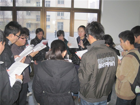 每周一、三、五早晨七点到七点半,“维克多”英语协会的会员们都会在会长的带领下进行晨读。尽管冬天天气很冷,但是会员们的学习热情非常高,都会准时到达。晨读时,会员们反复朗读名句、名篇,而会长则会认真倾听会员们的发音。遇到发音不准的单词,会长会耐心为会员指出来并纠正发音。语言学习主要在于重复,并且能说出来,而协会的晨读则为会员们的英语学习要提供了一个很好的机会。晨读自九月开办以来从没有因为任何原因停办过,会员们则积极参加,不愿缺席每一次晨读。