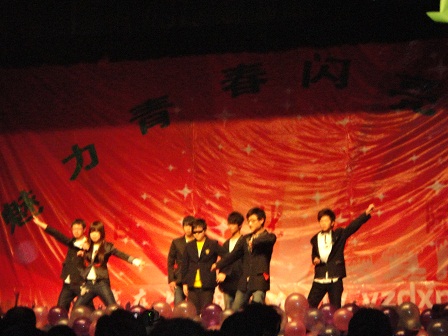 的“Fiver组合”和“雷阵雨组合”获得亚军。最后,赢在大学网站CEO张磊和大家分享了自己的创业经历。晚上九点,大赛圆满结束,嘉宾和演员合影留念。