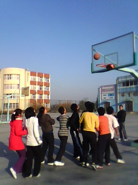 东山操场参加班级自行组织的3+2趣味篮球会。