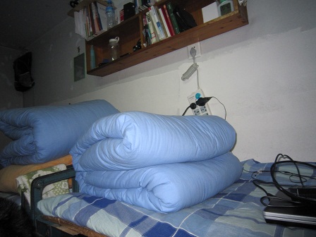 生活部部长孙鲁伟组织生活部全体成员在22号男生宿舍楼下集合,对大一宿舍进行突击抽查。此次抽查非常正式,检查到宿舍的每一个角落,其中对被子的检查尤为严格。