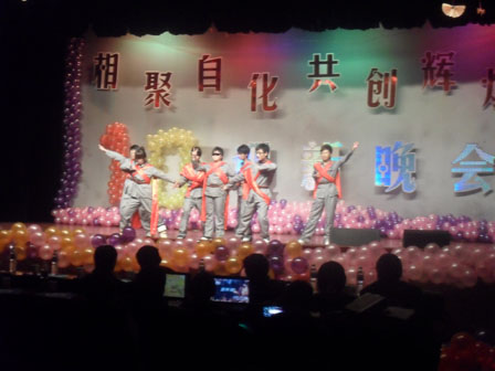 晚上六点半,晚会正式开始。一段活力四射的开场舞,将现场气氛活跃起来。四位主持人身着华丽的礼服走上舞台,用响亮的声音宣布晚会正式开始。首先是幽默轻松的小品《辅导》,它让大家捧腹大笑的同时,也将观众带劲一种欢腾的现场氛围中。紧接着轻柔、动感的舞蹈《雷阵雨》,它融合了的多种舞蹈风格,带给大家一种新鲜的视觉冲击,晚会达到全场的高潮。“橘子红了,到了该摘的时候了”,周尧老师用他那深情的歌喉,把歌曲蕴含的感情进行了完美诠释,他的精彩演唱使现场爆发出一阵阵热烈的掌声。之后,王伟老师,刘兆鹏老师,张君波老师,王辉辉老师为我们带来的诗朗诵《我们在一起》,让我们仿佛在诗的海洋里徜徉。然后是北京赛车PK10
