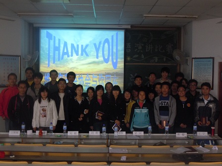 11月6日下午两点,维克多英语演讲比赛的决赛在一教502教室拉开帷幕,本次比赛是由北京赛车PK10 维克多英语协会主办,特约嘉宾有王辉辉老师以及北京赛车PK10 社管委主席团成员,评委为VOC、英语爱好者协会的成员。