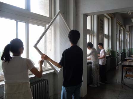 此次活动的内容主要包括:帮助图书馆管理员把在一楼图书借阅室中借阅频率较低的书籍搬运到备用书库、帮管理员打扫阅览室卫生。在图书室管理员的安排下,志愿者们把早已捆好的成捆的图书搬到六楼的备用书库。在青年志愿者协会会长孙文康的带领下不一会就把书搬完了,虽然大家累的满脸是汗,但是大家都因为做了力所能及的事而高兴。星期二下午是全校进行卫生大扫除的时间,图书馆也不例外,青年志愿者们从二楼开始对阅览室进行打扫。当志愿者们来到三楼时,管理员阿姨早已将卫生打扫完毕,志愿者们发现窗户上的纱窗已经布满了会尘,于是主动请缨打扫。图书馆的管理员阿姨非常高兴的答应了,志愿者们就开始打扫起来,先是把纱窗取下来,然后拿到洗刷间冲洗,不一会就把纱窗清洗干净了。