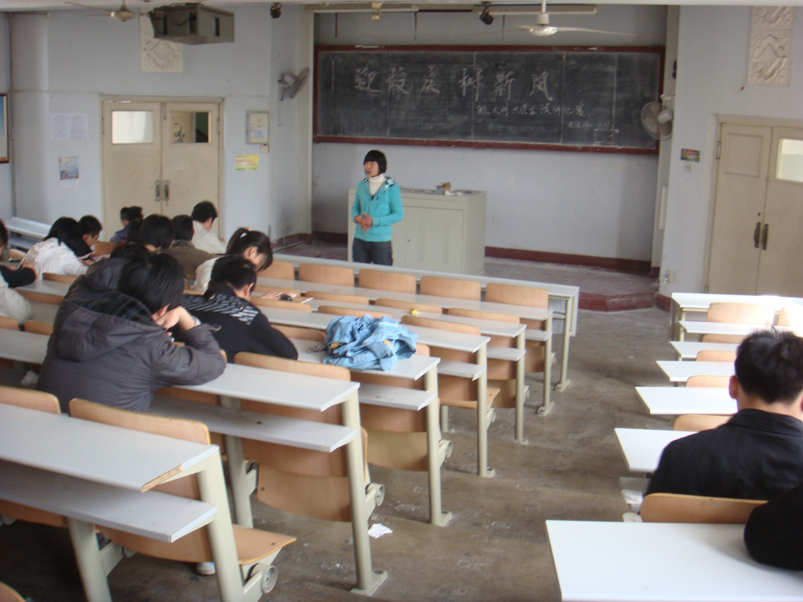 2010年4月27号下午2:00,电信082于二教211召开主题班会,举行“迎校庆 树新风——做文明大学生”演讲比赛。
