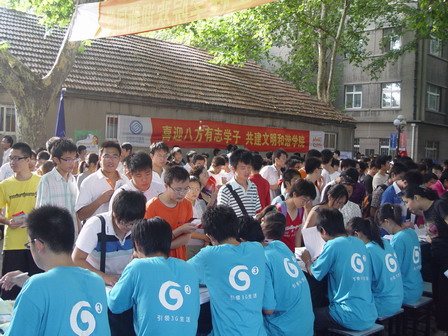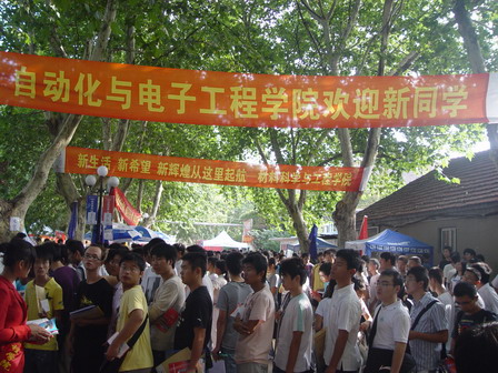 新生接待地点人来人往,迎新生工作在今天达到了高潮,各项工作都在有条不紊得进行,迎新现场忙中不乱。