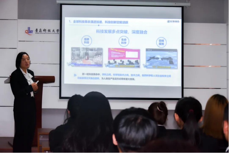 仪式最后,郭蒙蒙为新发展团员们上团课,她从格局重构和竞争加速、把握机遇和应对挑战、深化改革和自立自强三个方面展开,勉励新发展团员们志存高远,坚守奋斗,铭记入团誓词,牢记青春使命,担当时代责任,为祖国贡献青春力量。