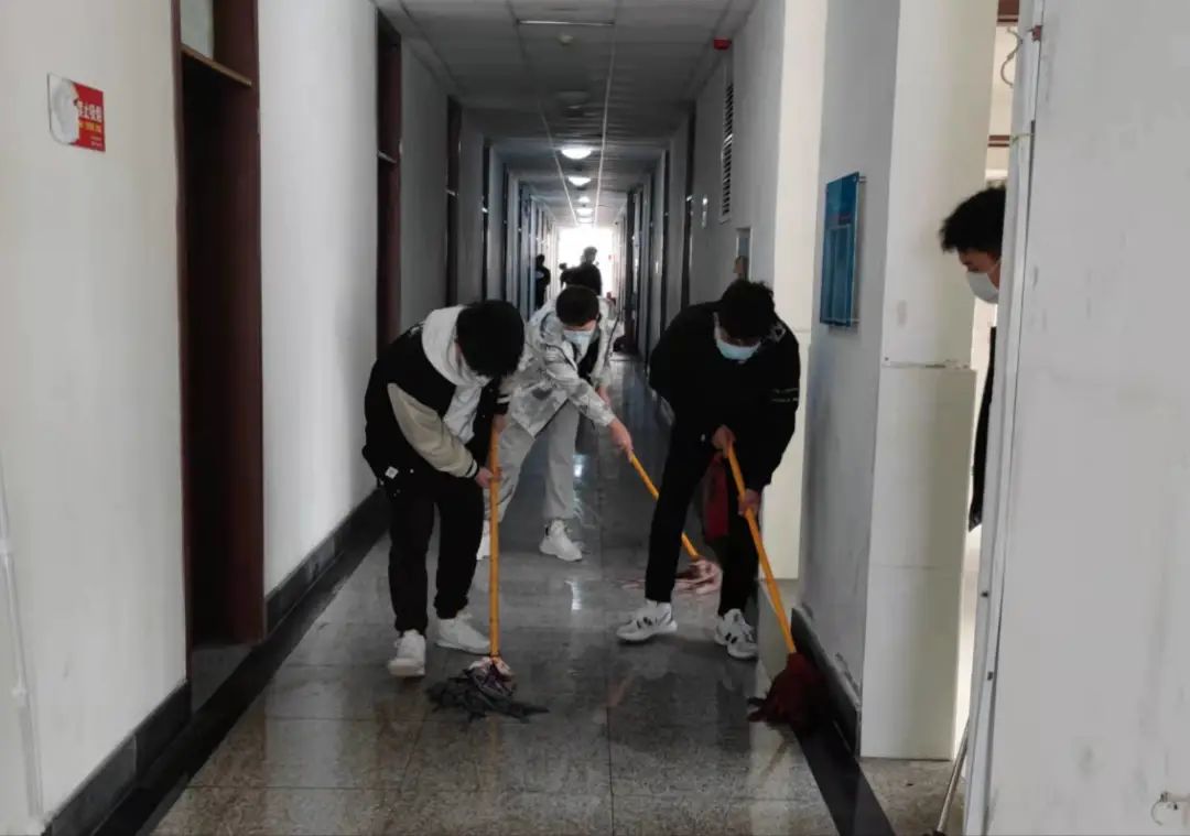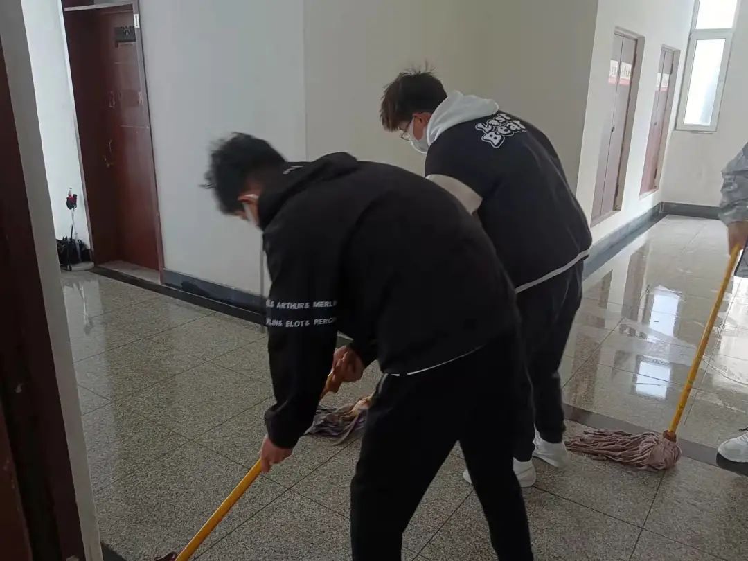 党委副书记兼副院长马寒、团委书记兼学工办主任郭蒙蒙及辅导员们全员上阵,带领各年级学生党员、学生骨干、入党积极分子等分区域清洁消杀楼内公共区域,全体同学同步进行舍内卫生大扫除,严格遵循北京赛车PK10
