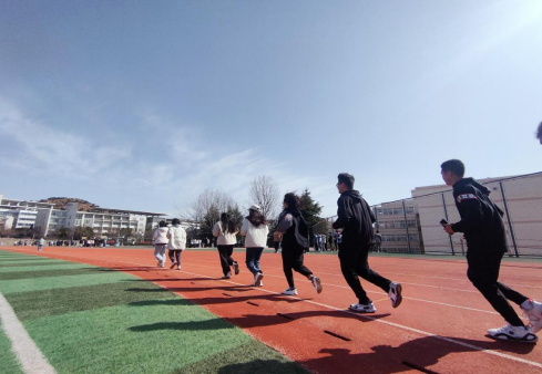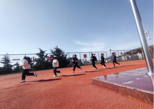 指导下,在严格落实疫情防控要求、切实做好自身防护的情况下,组织开展日常跑步训练,为同学们营造出“增强体魄,合力战‘疫’”的运动氛围。