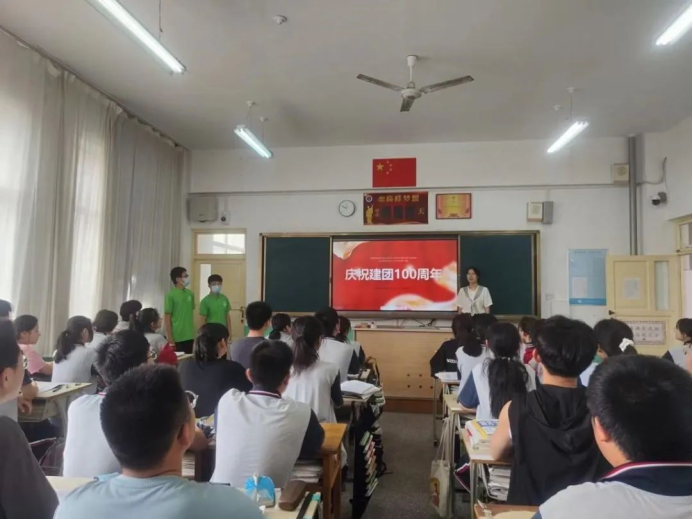 高三17班,团队队员开展“传承红色基因,弘扬爱国主义精神”庆祝建团100周年主题宣讲,引导团员学生深刻理解共青团的最大优势在于遍布基层一线、深入青年身边,紧扣服务青年的工作生命线,履行巩固和扩大党执政的青年群众基础这一政治责任。从小小红船到巍巍巨轮,广大学子深刻认识到:一个人、一个团体,只有心有所守、矢志不渝,才能行稳致远。