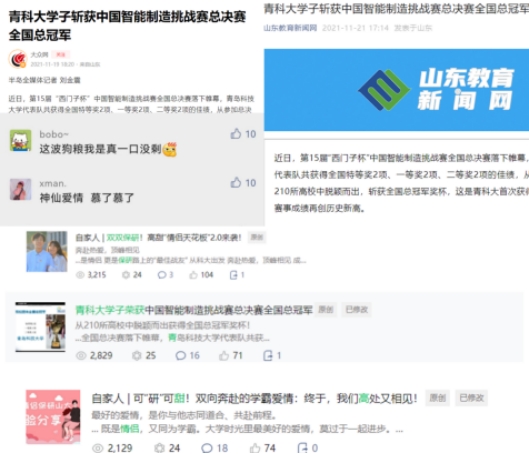 网站获评优秀网站,原创思政类作品获评“最佳原创推文”、“最具影响力短视频”等荣誉,多次受到人民日报、光明日报、齐鲁晚报等国家级媒体转发报道,网络思政云矩阵的构建和实施覆盖学生全面成长“在线”,确保育人实效。