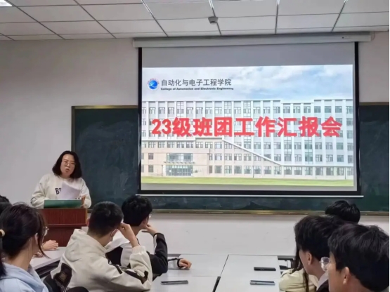 团委书记兼学工办主任郭蒙蒙,辅导员刘志飞及23级全体班团干部出席会议。