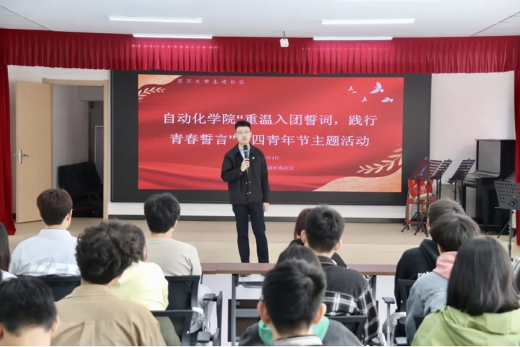 马仁轩带领全体团员回顾了五四运动的光辉历程,强调了五四精神的时代价值,并勉励广大团员青年要继承和发扬五四精神,坚定理想信念,勇攀科学高峰,并鼓励新团员们要积极参与社区实践活动,将所学知识与实际相结合,为社区建设贡献“自”家青春力量。