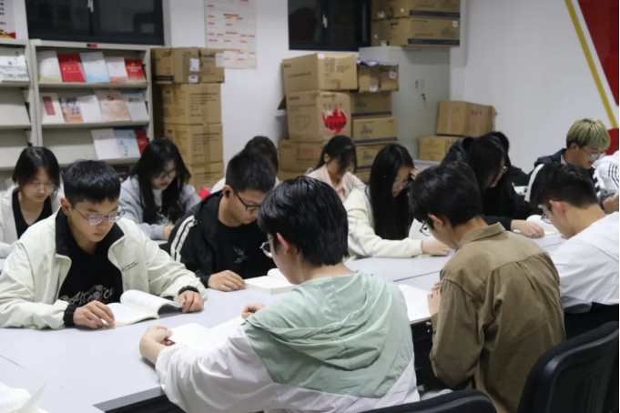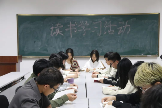 活动伊始,同学们首先进行了一小时的自主阅读,认真学习了《习近平著作选读》《习近平新时代中国特色社会主义思想专题摘编》《论党的青年工作》等著作,随后根据所思所感,重点研读交流《习近平与大学生朋友们(第二卷)》,各位同学深入思考,积极讨论,仔细记录收获。思想因交流而进步,同学们纷纷表示,要将习近平新时代中国特色社会主义思想内化于心、外化于行,将以青春之我,谱写青春之华章,为实现中华民族伟大复兴的中国梦贡献自己的青春力量。
