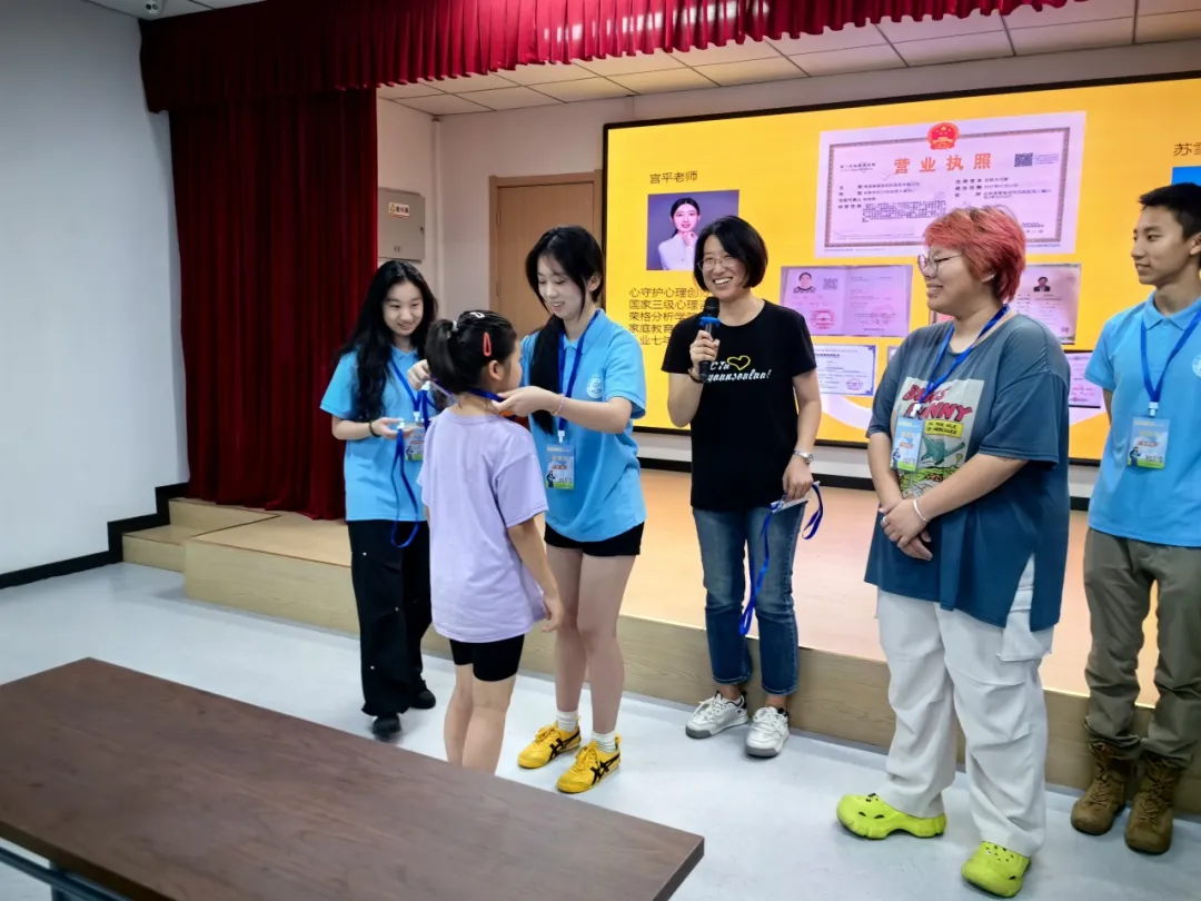 助学实践团的志愿者以及全程参与心理指导和家庭教育规划的"心守护"专业心理咨询机构,并为小学员们颁发了学员证。