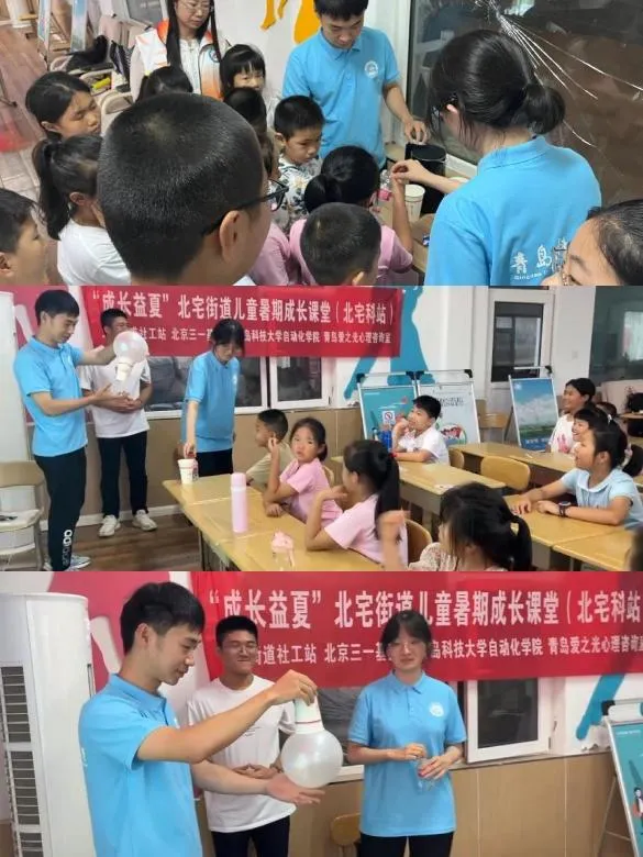 “筑梦”志愿服务团队于7月16日满怀激情地踏上了前往青岛市崂山区北宅街道支教的旅程。在校团委的指导和北宅街道社工们的帮助下,一系列妙趣横生的小实验以及开拓思维的创客活动顺利开展,在孩子们灿烂的笑容中,志愿者们重拾生命的意义,以实际行动助力乡村振兴,展现了当代青年的责任感和使命感。