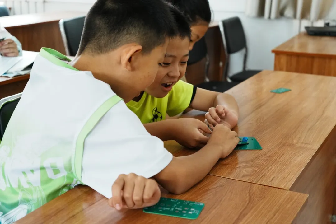 为了让孩子们全面接触科技前沿的知识,志愿者将专业性赛事带入课堂,向孩子们展示了基本的电路板和电子元件,介绍了电流、电压等基础知识以及有关智能车的技术内容。孩子们在志愿者的指导下,了解了电路板的印刷原理、焊接技术以及用途等。现场还播放了视频学习,让孩子们从理论方面理解电路原理,同时也对智能车等比赛的概念有了初步了解,极大地激发了他们的好奇心和探索欲望。