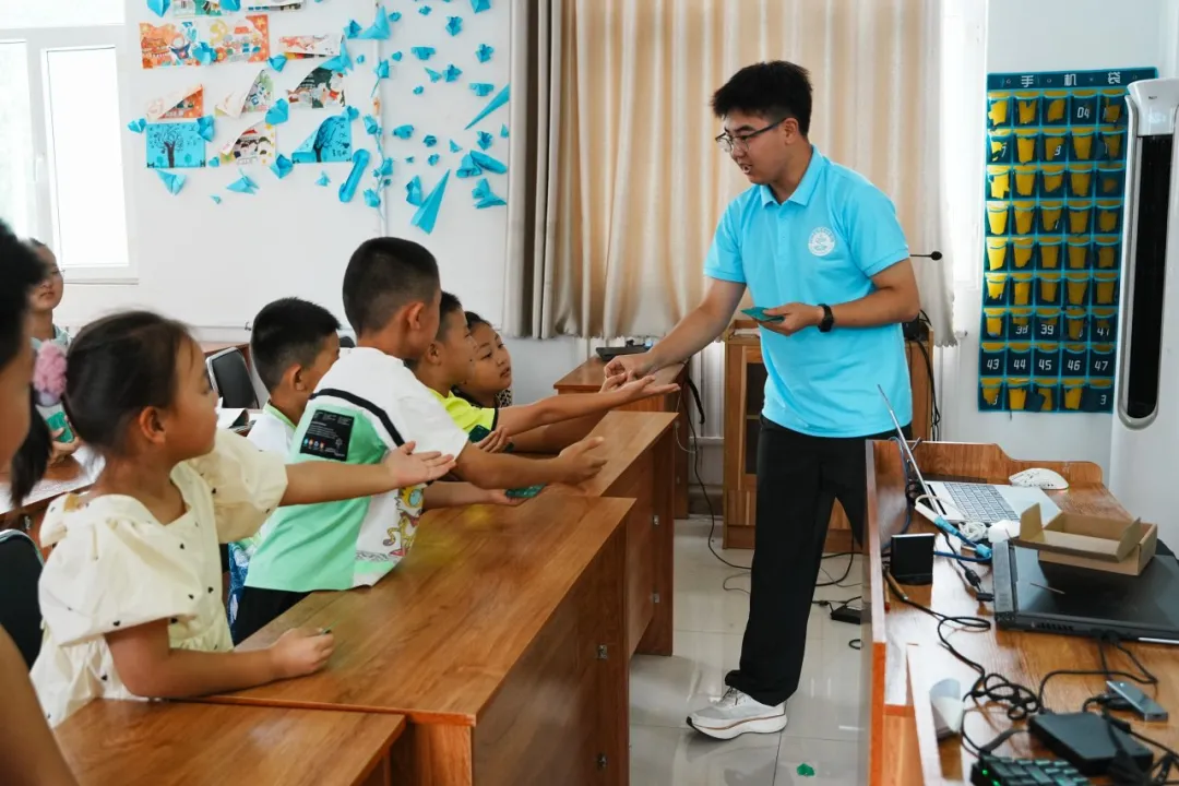 “喜阳阳”志愿服务团队赴滨州市阳信县开展暑期支教活动,7月22日,志愿者们根据自身专业特长为孩子们设计了一堂创新型科创课,让孩子们亲身体验科技的神奇与魅力。