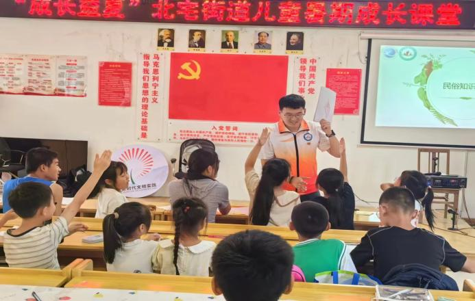 “筑梦”志愿服务团队赴青岛市崂山区北宅街道东陈村,怀揣着梦想与爱心开启一场充满着温暖与希望的乡村支教,在北宅街道东陈村“成长益夏”暑期成长课堂传递知识、接力爱心。
