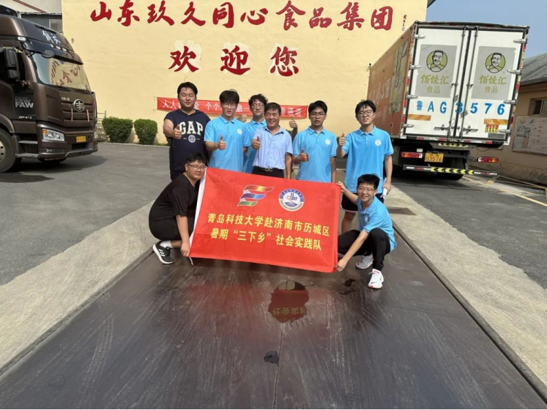 “智行先锋,绿动山东”实践队赴济南历城区山东玖久同心食品集团展开实践调研。