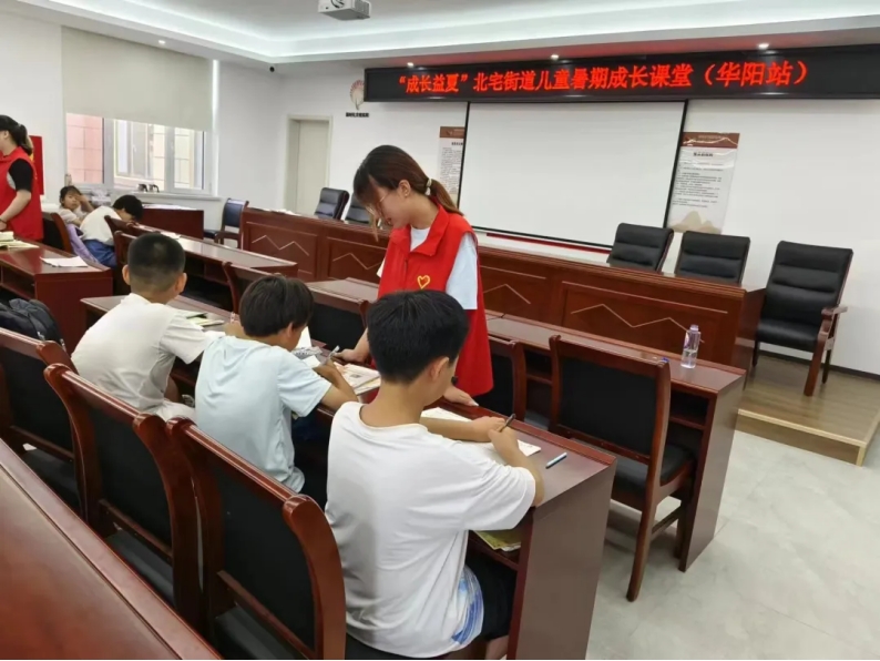 每天上午,志愿者们为社区儿童进行课业辅导,有助于让社区儿童更好地掌握课业知识,并且查漏补缺。在辅导过程中,学生积极地向志愿者请教自己在学习中遇到的问题,志愿者耐心地为孩子们提供解决方案。经过孩子们与志愿者的共同努力,孩子们高效地完成了假期作业,进步之显著令人欣喜。