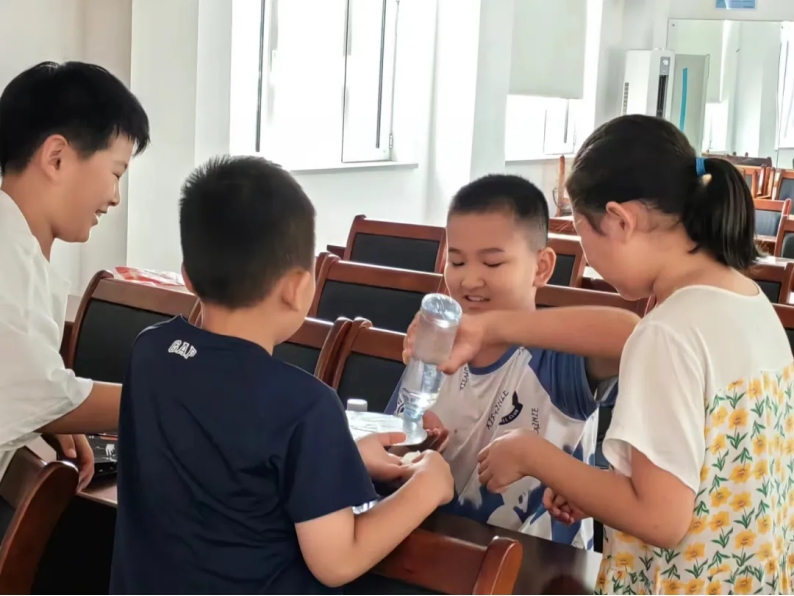 同时,志愿者们还开展了科学小课堂活动,旨在营造浓厚科学氛围,让科学创新扎根孩子们的心中。“悬空桥”“虹吸原理”“一张纸能承受多大的重量”“大气压”等实验,把生活中随处可见的素材变成了一个个妙趣横生的科学小实验。学生们积极参与,完成了一个接一个的实验。科学的探索和发现,就像一颗颗种子,播撒在青少年们的心田,而科学小课堂,就是那把种子播种的锄头。