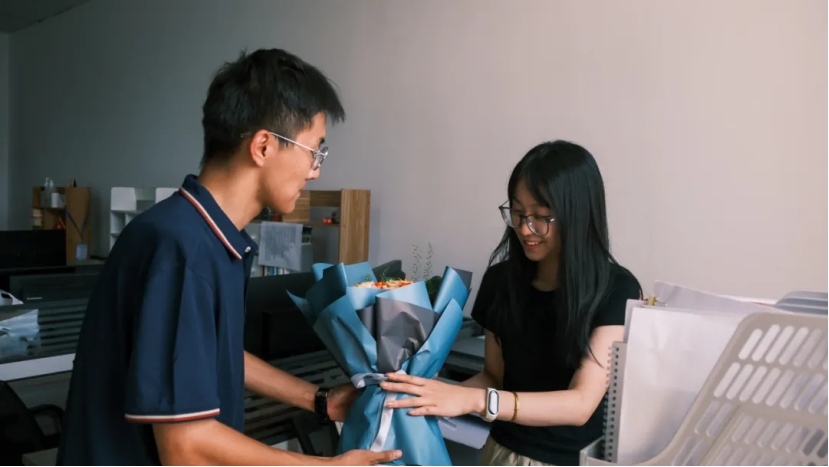 学生手捧鲜花,心怀感激,他们以最真挚的情感,向辛勤耕耘的老师们献上节日的祝福。