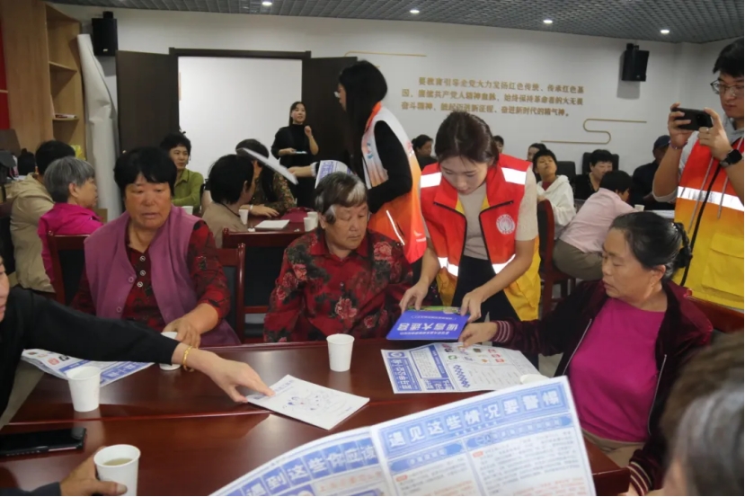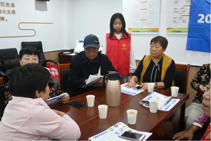 志愿者深入社区,积极投身于向社区居民普及反诈骗知识的行动中,协助北宅街道社工站为老人普及反诈骗的重要性,细心探询了他们对反诈软件的使用情况。志愿者耐心倾听社区居民的疑惑,并逐一对疑惑进行了详尽解答,使得老人对网络诈骗有了更加清晰的理解。