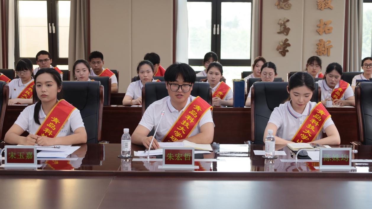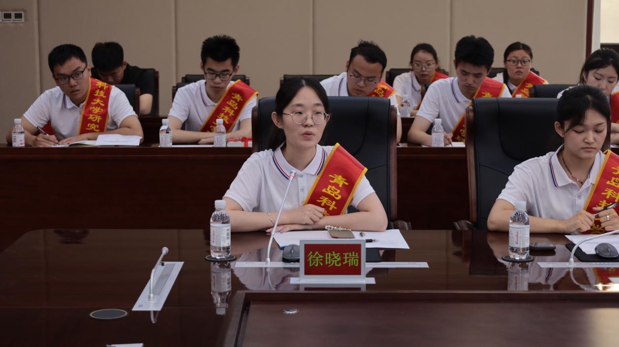 朱宏哲作为志愿者代表带领全体志愿者庄严宣誓并发表感言。作为研究生支教团成员,他深情回忆了求学期间受助经历,毅然放弃沿海城市优渥的工作机会,选择前往新疆支教。“人不一定要往高处走,也可以四处走一走”的朴实话语道出了当代青年的家国情怀。徐晓瑞结合专业所学畅谈报国志向,表示将充分发挥控制工程学科优势,投身新疆生产建设兵团现代化建设,用实际行动践行“明德笃学、弘毅拓新”的校训精神,在西部大地上书写青春华章。