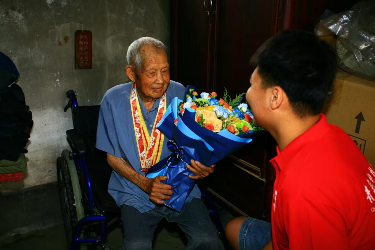 “胶东抗大爱国主义教育”暑期社会实践团一行,怀着无比崇敬的心情,专程前往山东省栖霞市,拜访了期颐之年的抗战老兵李作响老人。此次活动旨在通过面对面聆听历史亲历者的讲述,引导青年学生铭记革命历史,感悟红色精神,激发爱国情怀与责任担当。