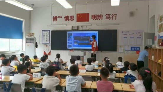 幼儿园部。针对幼儿语言发展特点,志愿者们设计了 “看图说词”“情景对话” 等互动环节,用卡通图片引导孩子们学说 “老师好”“谢谢” 等日常用语,通过分组竞赛激发参与热情。活动现场,孩子们主动用普通话分享自己的玩具,课堂互动率达90%以上。