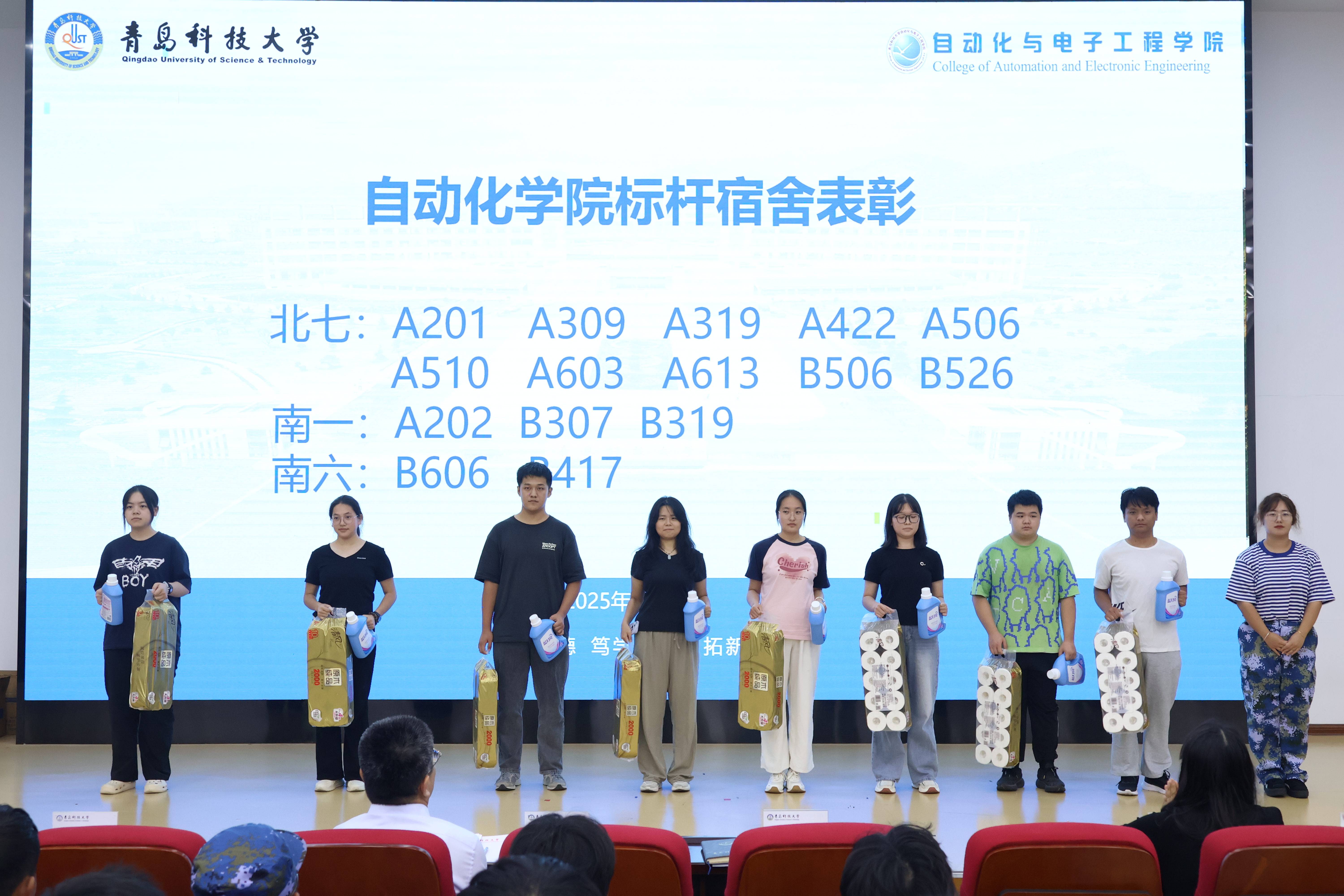 刘名森、赵赫赫为上半年表现突出的标杆宿舍代表颁发了奖品。徐文丽对《北京赛车PK10