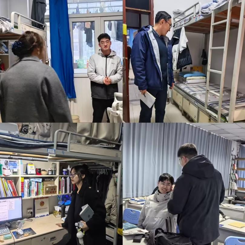 学工办全体辅导员老师深入北苑七号楼学生宿舍,对活动成果进行全面检查验收。
