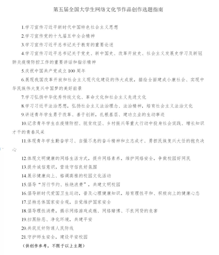 为深入学习贯彻习近平新时代中国特色社会主义思想,全面贯彻党的十九大和十九届二中、三中、四中、五中全会精神,切实将习近平总书记关于党史、新中国史、改革开放史、社会主义发展史学习及新冠肺炎疫情防控工作的重要讲话和指示精神贯彻落实引向深入,围绕迎接建党一百年行动,加大优秀网络文化供给力度。根据教育部思想政治工作司、中央网信办网络社会工作局关于举办第五届全国大学生网络文化节通知的要求,北京赛车PK10