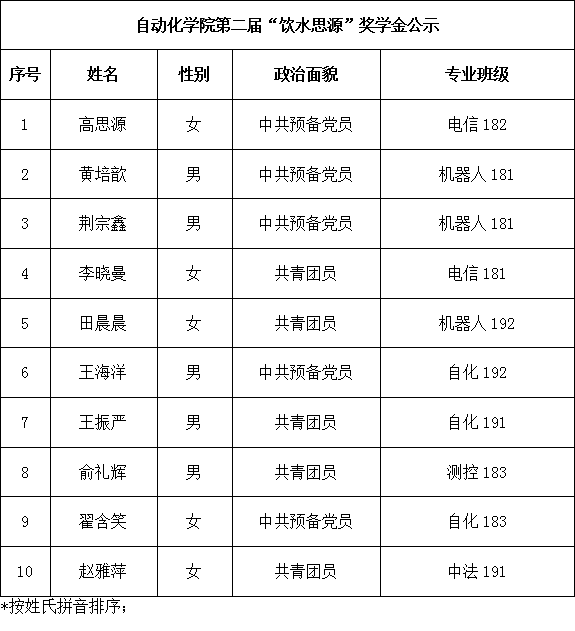 第二届“饮水思源”助学金。现予以公示,公示期为11月26日至11月28日,如有异议者,请在公示期内实名向北京赛车PK10