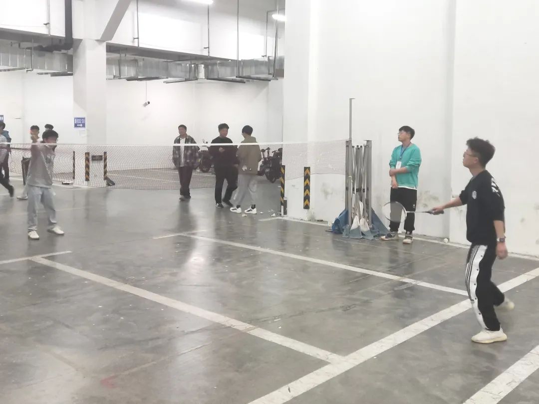 羽毛球协会相关负责人宣读比赛规则和分组情况,到场选手有序分组开始比赛,比赛过程中学生会志愿者协助裁判观察出界情况。